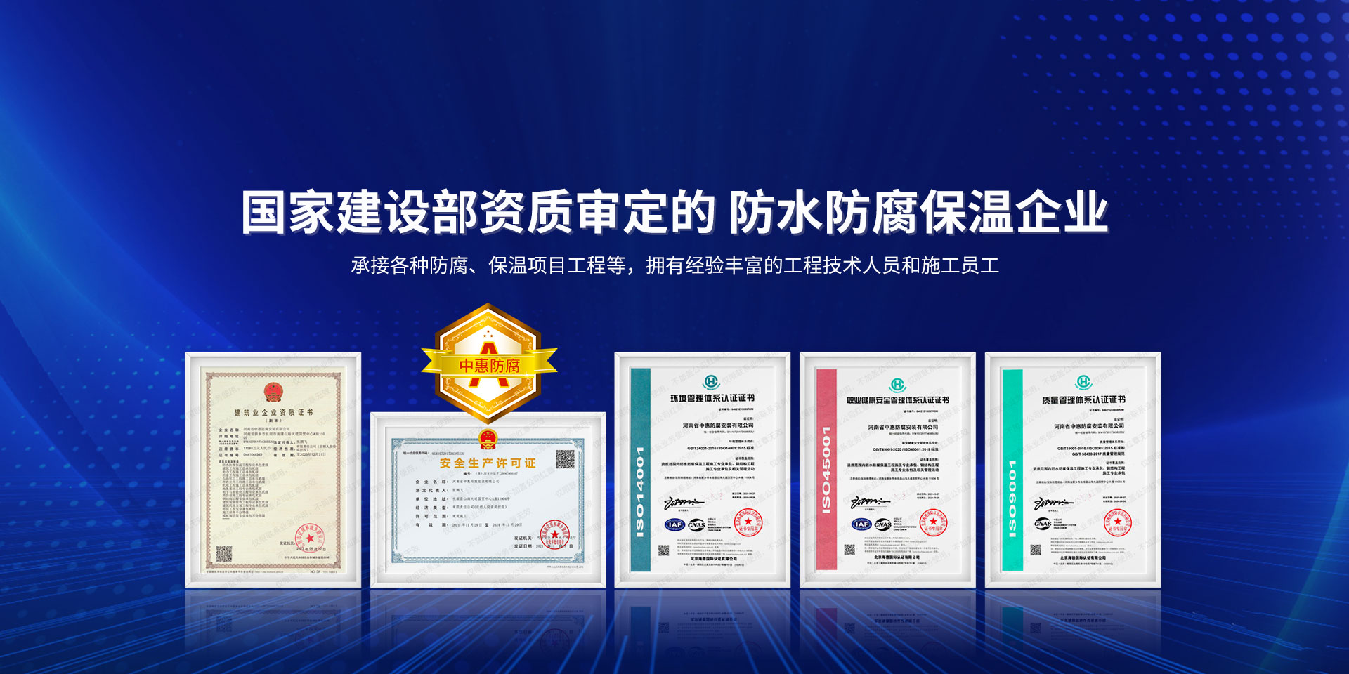 公司經營范圍:防水防腐保溫工程;消防設施工程;建筑裝修裝飾工程;建筑機電安裝工程;電力工程;建筑工程;石油化工工程;工業清洗工程;油罐清洗工程;鋼結構工程;環保工程;模板腳手架工程;電纜防火封堵、防污閃噴涂、外墻外保溫工程;各類施工勞務作業;設備維修、船舶鉚焊、涂裝;電力工程材料、建材、防水材料、防火材料、防腐保溫材料銷售,并相繼通過了GB/T19001-2008idtISO9001:2008GB/T50430-2007質量管理體系認證證書。GB/T24001-2004idtISO14001:2004環境管理體系認證證書。GB/T28001-2011idtOHSAS18001:2007職業健康安全管理體系認證證書。公司是中國防腐蝕于防護協會、中國施工企業管理協會、電力協會和中國鋼結構防水協會會員單位。 公司的經營業務涵蓋了石油、化工、電力、冶金、煤炭、船舶、國防、燃氣、水利、環保、交通運輸、航空及國防軍工和輕紡市政等行業的防腐保溫絕熱設備。鋼結構安裝、防火、防水、金屬噴鍍、聚脲噴繪、陰極保護、防滲透堵漏、玻璃鋼及各種磚版材料襯里、橡膠襯里、煙氣硫和耐酸溶劑腐蝕等工程施工。公司連續十年榮獲“省市先進施工企業”“安全生產先進單位”“重合同,守信用企業”和“AA***資質企業”的稱號。2000年被命名為市級文明單位,2002年被國家工商行政管理局命名為“重合同,守信用的企業”、被中國工業防腐蝕技術協會命名為“防腐蝕企業,能源節約及環境保護領域有豐富的經驗和***的業績。工程一次交驗合格率100%。其中攀枝花鋼鐵公司煉鐵廠四號高爐及熱風爐防腐工程、上海寶鋼公司煤氣柜防腐工程、撫順石油一廠裝置防腐項目、齊魯石化公司稀烴廠高塔防腐工程、吉林化學工業公司煉油廠油罐防腐工程、天津石化熱電廠六號爐頂棚聯絡管保溫工程、大慶油田(太倉)力神泵業工程、中國化學工程第十一建設工程、中原油田勘探局工程、中國石化銷售有限公司華北分部、魯皖輸油管道工程、貴州開磷息烽合成氨工程、陜西黃陵煤化工程、中國石油天然氣西部管道塔里木輸油工程、邯鋼集團邯寶鋼鐵公司煉鐵工程、德州供電工程、吉寶(南通)船廠工程,偃師華潤熱力工程、鄭州熱力總公司。 河南省中惠防腐安裝有限公司愿以豐富的施工經驗,***的技術,***的設備,***的管理,***的服務,竭誠為國內外廣大的用戶提供***滿意、******的工程作品。 我公司愿與國內外同仁一道,團結協作,共同推進防腐蝕行業發展! 公司地址:河南省長垣縣建設路北段360號 固定電話:0373-8866488 郵編:453400 網址:http://www_zhff_com_cn.0452picao.com